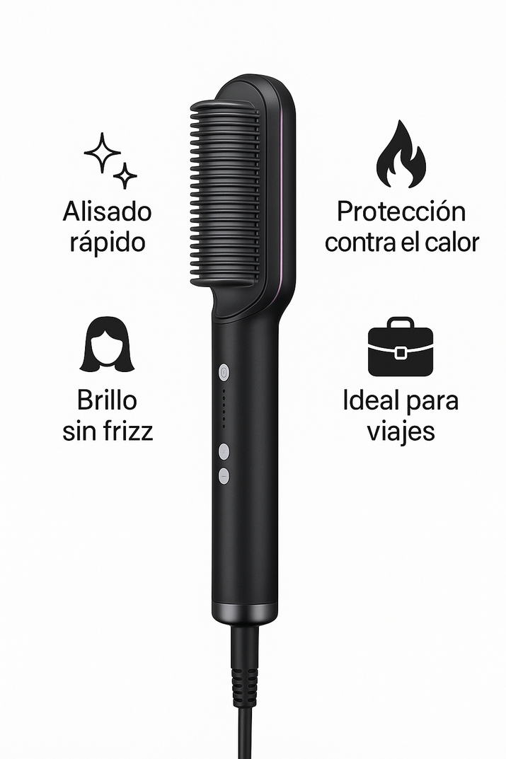 Transforma tu rutina de peinado con este innovador cepillo alisador que combina la eficacia de un peine y una plancha, permitiéndote lucir un cabello liso y brillante en minutos.